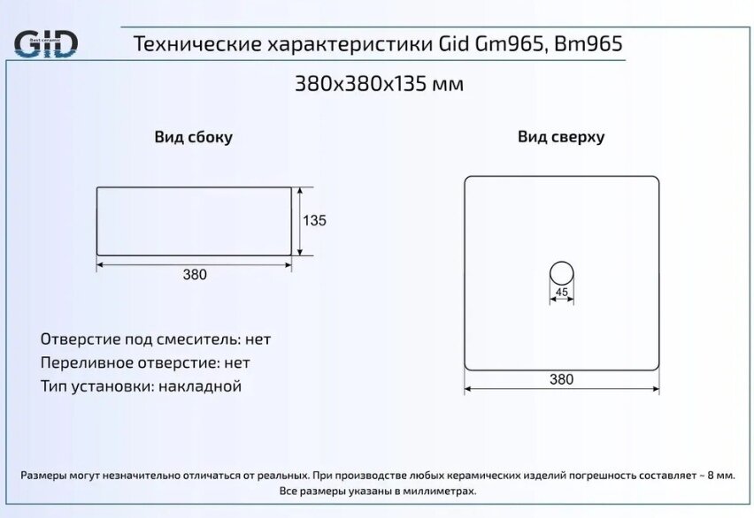 Ниже Вы можете прочитать отзывы на Накладная черная матовая раковина для ванной 385x385х135мм Gid Bm965, ознакомится с подробными характеристиками, посмотреть интересные обзоры и фотографии на Накладная черная матовая раковина для ванной 385x385х135мм Gid Bm965.