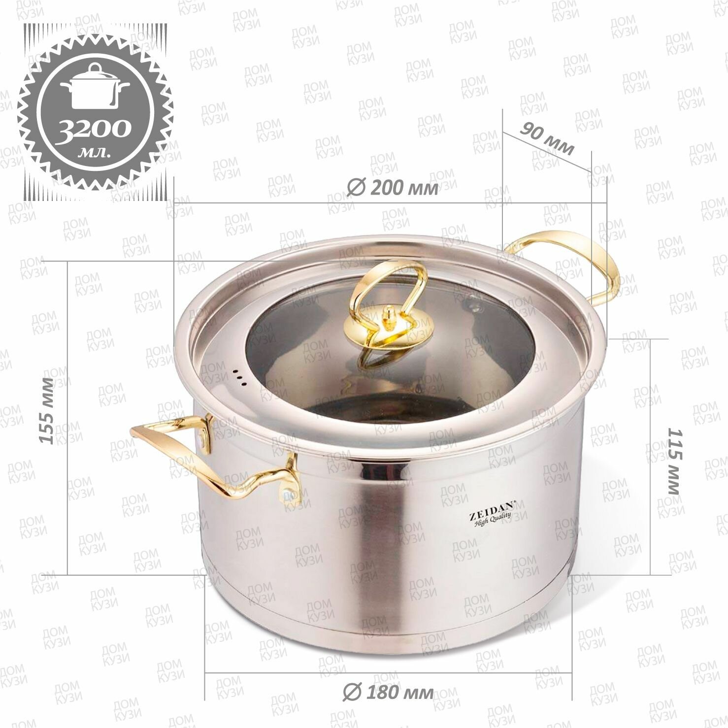 Набор посуды для приготовления из нержавеющей стали Zeidan кастрюли 2.1, 3 и 4 литра с крышками для газовых, электрических и индукционных плит