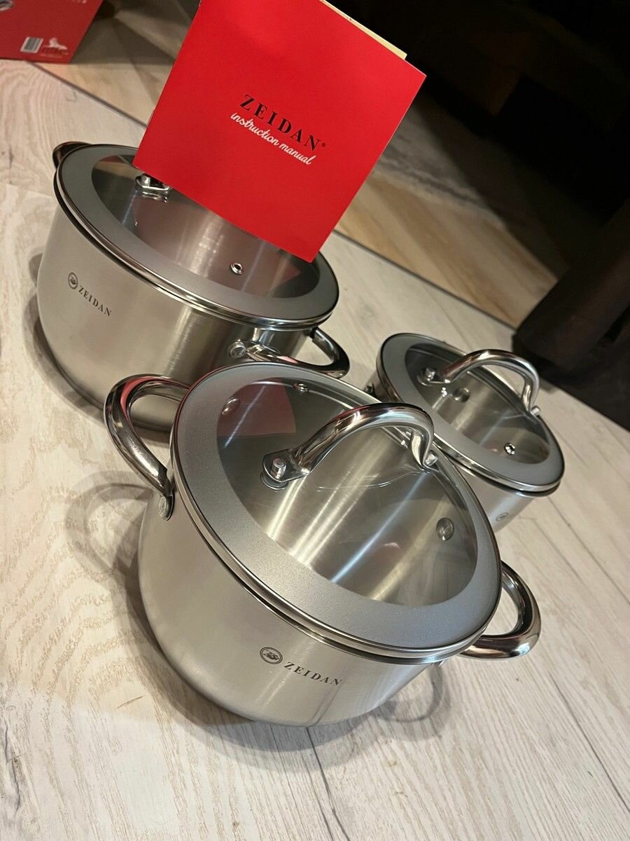Набор посуды для приготовления из нержавеющей стали Zeidan кастрюли с крышками для газовых электрических и индукционных плит 2.1, 3 и 4 литра