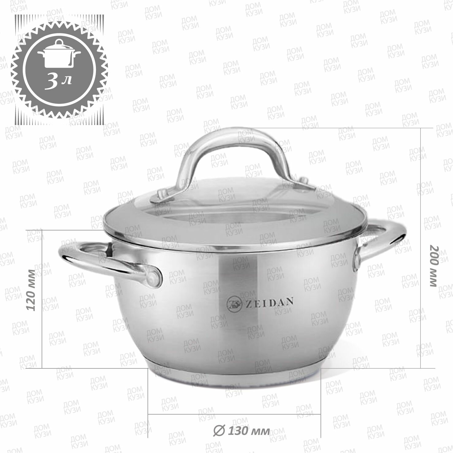 Набор посуды для приготовления из нержавеющей стали Zeidan кастрюли 2.1, 3 и 4 литра с крышками для газовых, электрических и индукционных плит