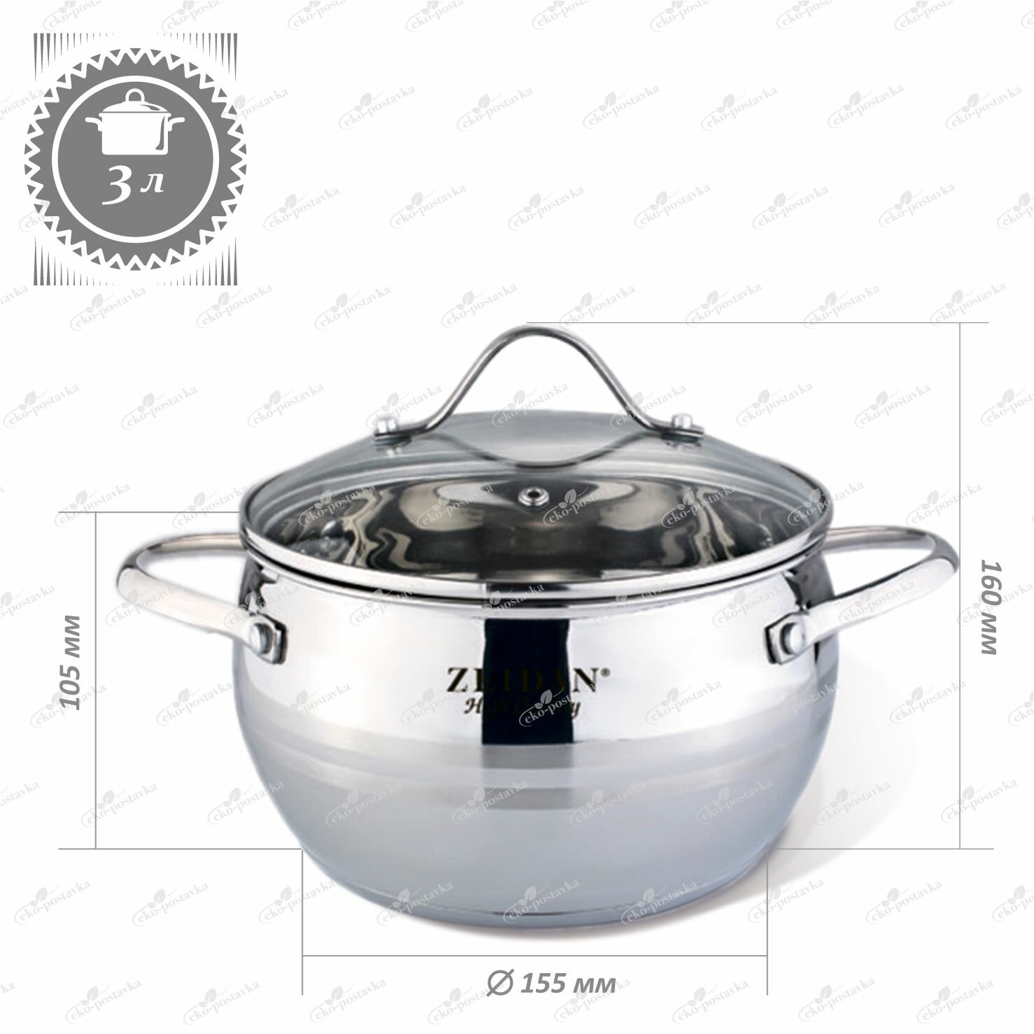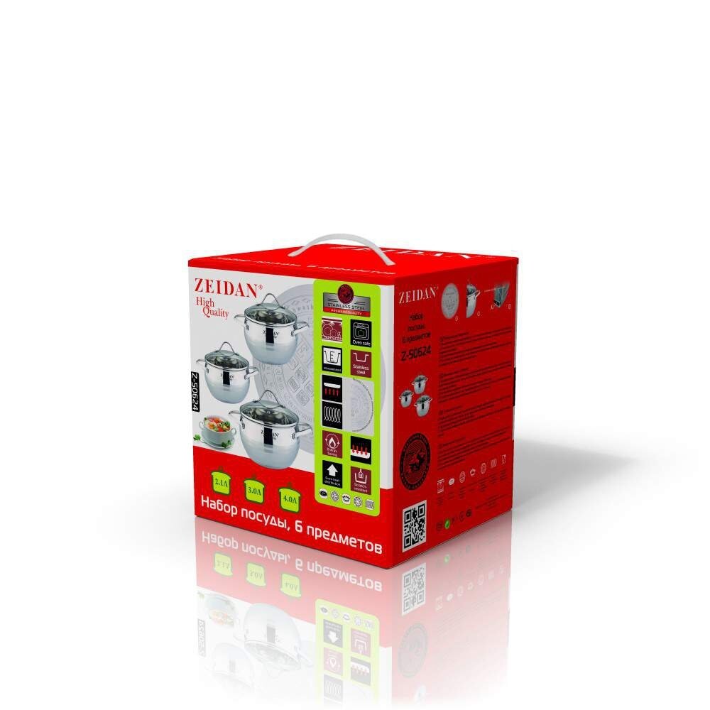 Набор посуды для приготовления из нержавеющей стали Zeidan кастрюли 2.1, 3 и 4 литра с крышками для газовых, электрических и индукционных плит