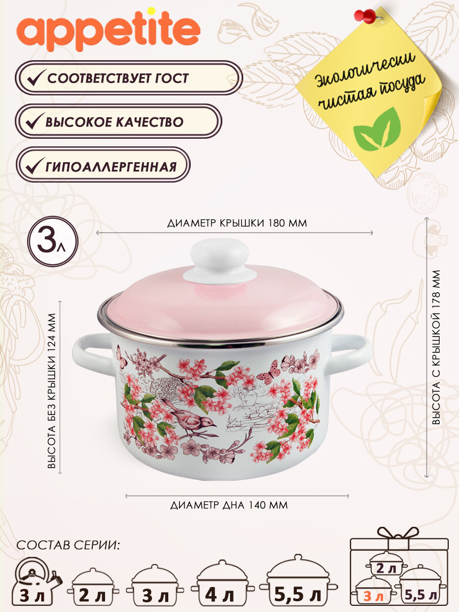 Набор эмалированных кастрюль Floral kitchen 3 предмета ( 2,3,4л) ТМ Appetite