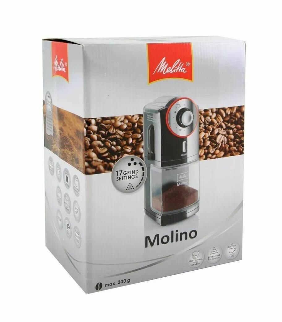 Кофемолка MELITTA Molino 100Вт сист.помол.:жернова вместим.:200гр черный