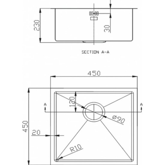 Мойка для кухни врезная/подстольная нержавеющая (1,2 мм) Emar EMB-113, цвет сатин, квадратная, 450х450х230 мм
