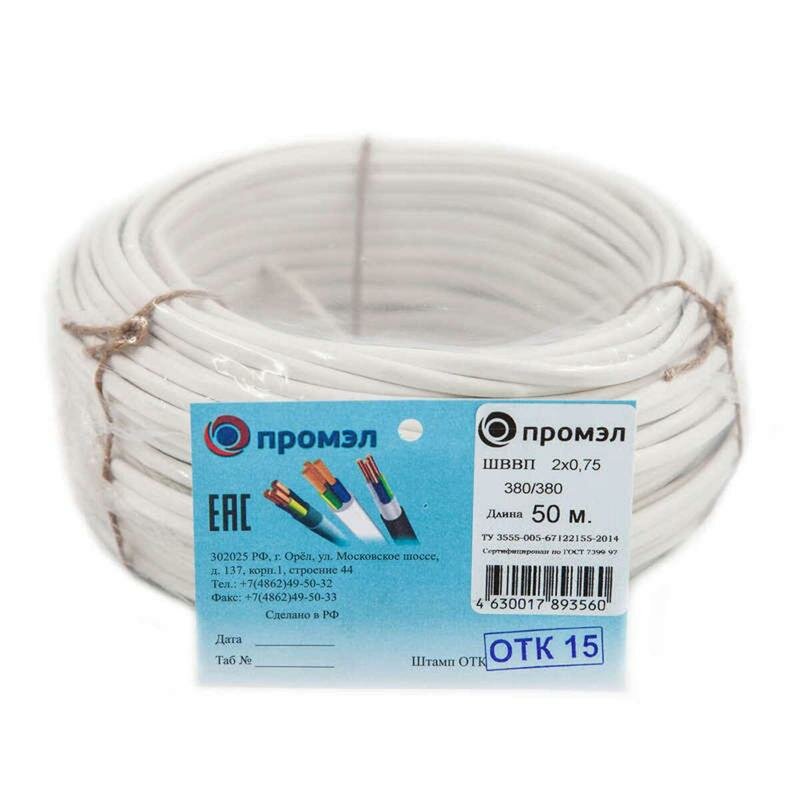 Провод ШВВП 2х0.75 (50м/бухта) Промэл 13321750 интересное: