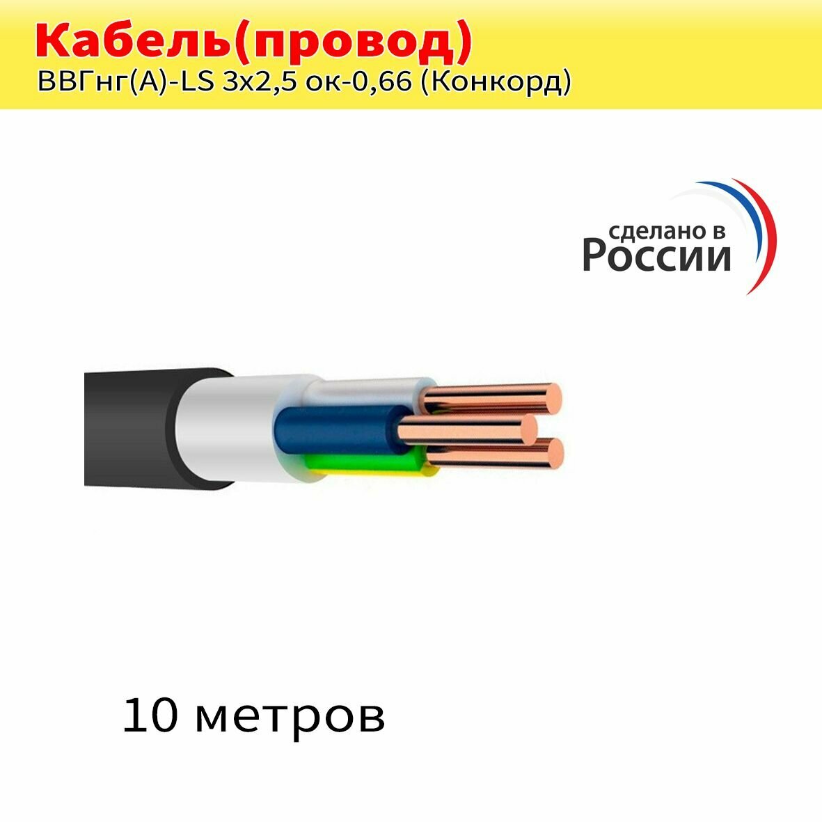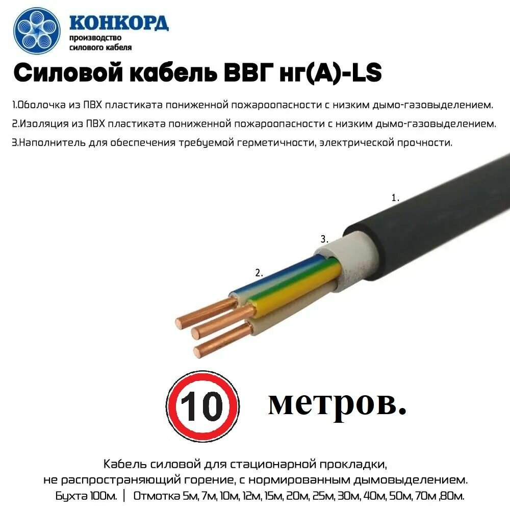 Силовой кабель ВВГнг(A)-LS 3х2.5 10метров Конкорд ГОСТ