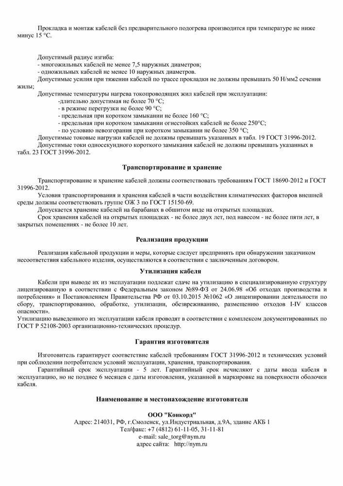 | Плюсы: | Отличный кабель, работаем с ним постоянно, сечение не занижено |