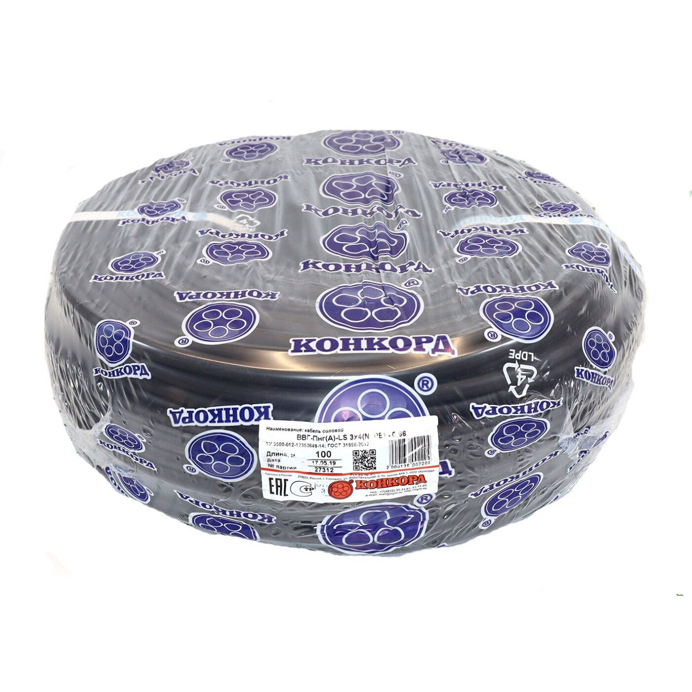 Купить Провод силовой ВВГнг(А)-LS 3х4 кв. мм., круглый, ГОСТ ("Конкорд") 100м.