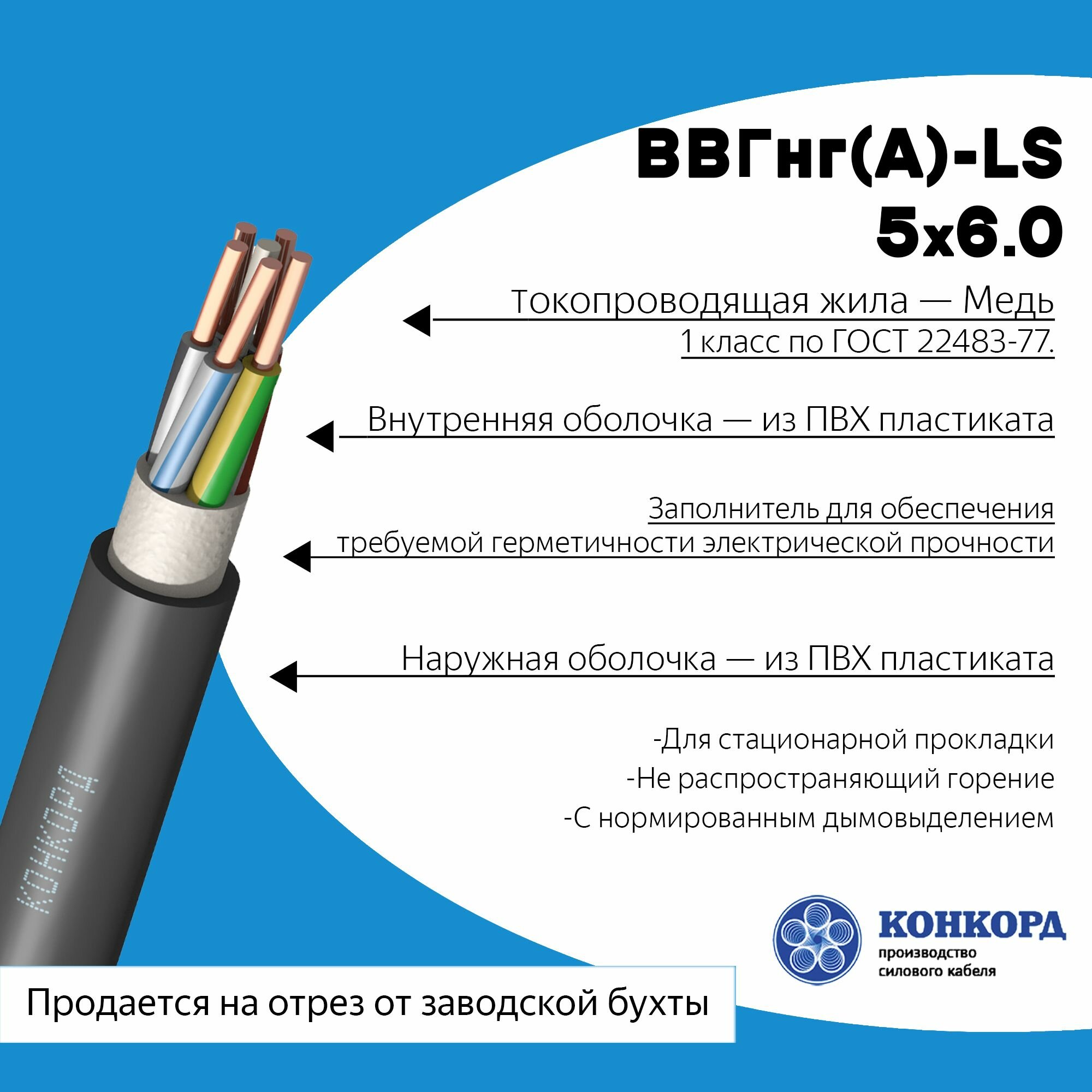 СохранитьСиловой кабель ВВГнг(A)-LS 5х6 Конкорд 8метров ГОСТ интересное: