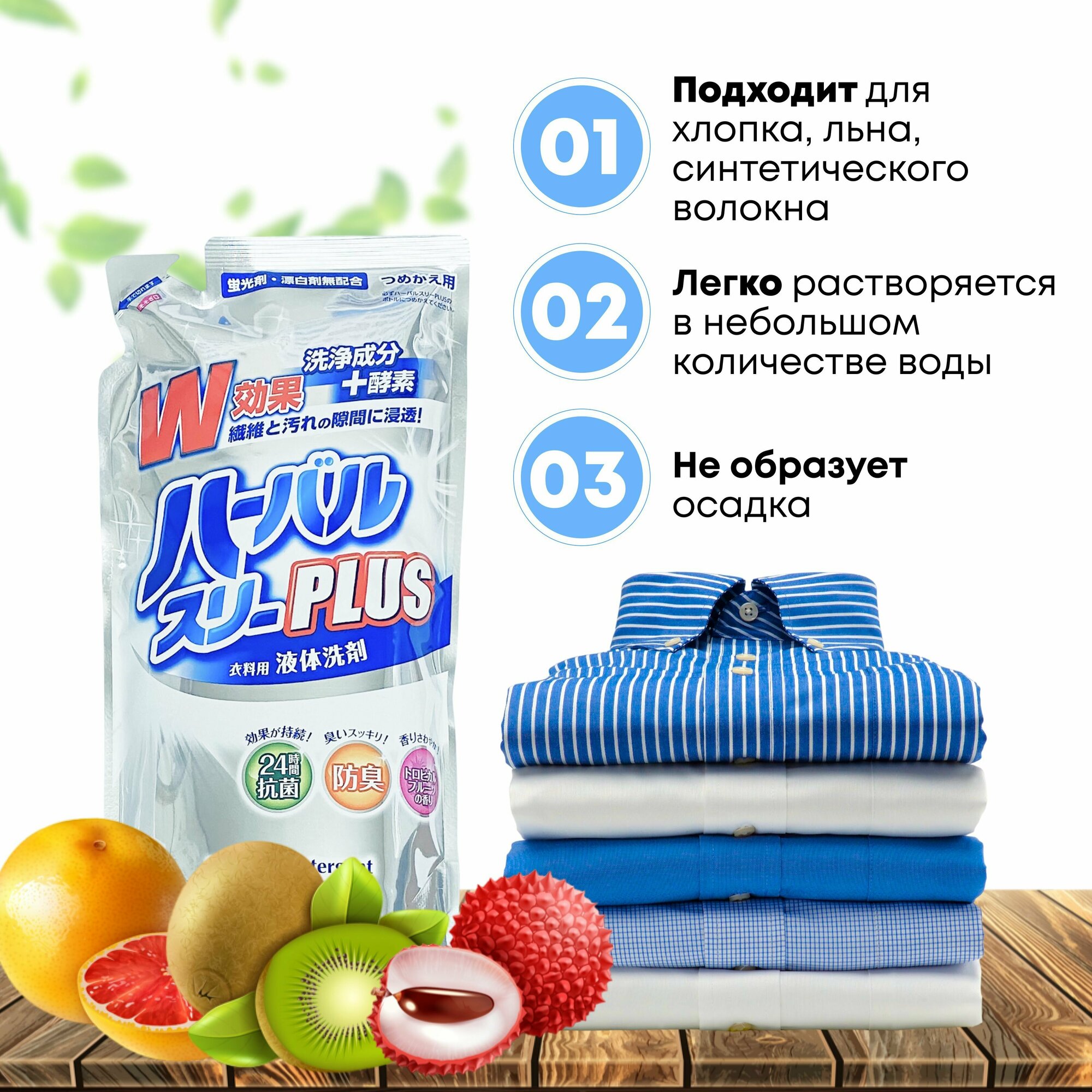 Mitsuei Herbar Three Plus Гель для стирки дезодорирующий с ферментами и ароматом фруктов 2 кг