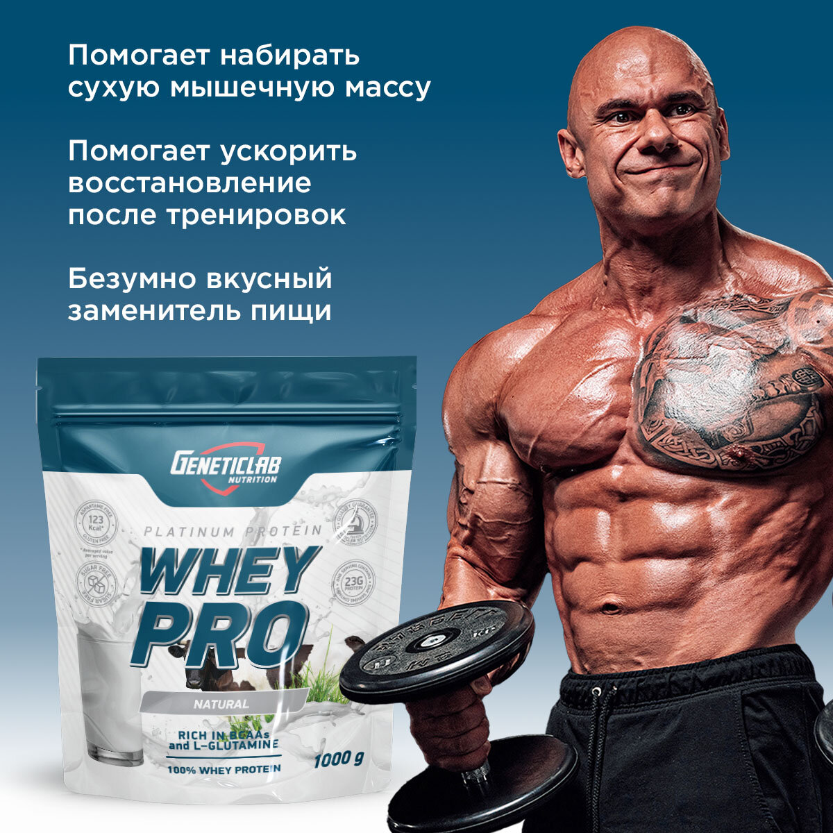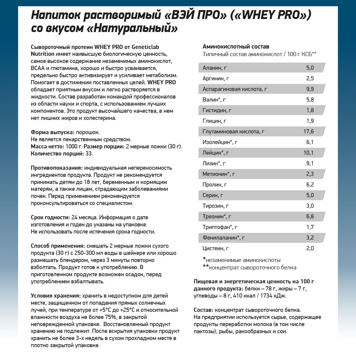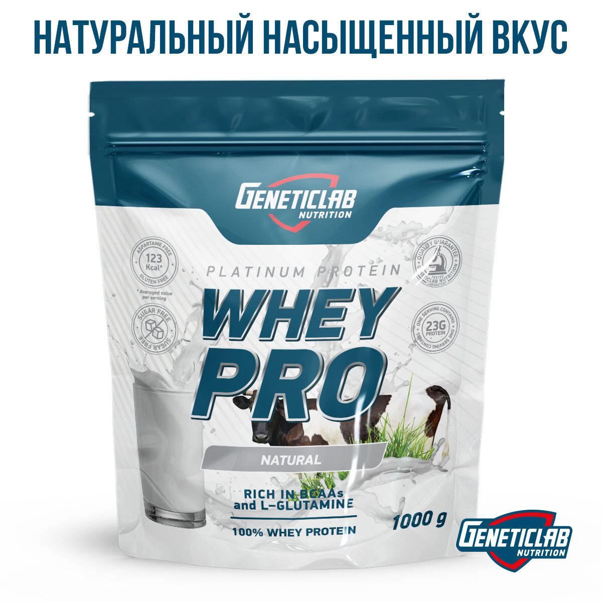 Протеин GeneticLab WHEY PRO, сывороточный, без вкуса, 100%, 1 кг