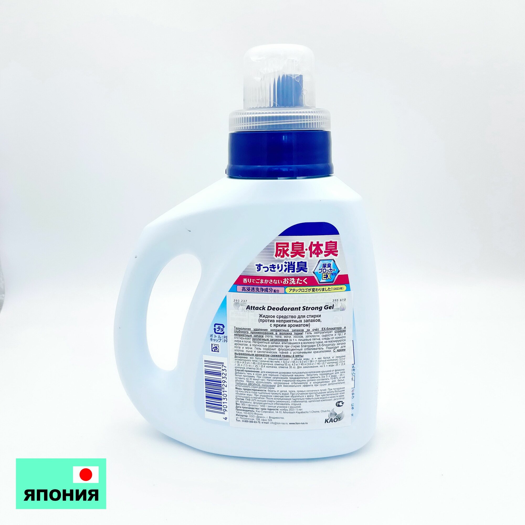 Kao attack deodorant strong gel жидкое средство для стирки с ярким мятно травяным ароматом, против неприятных запахов, флакон, 900 мл