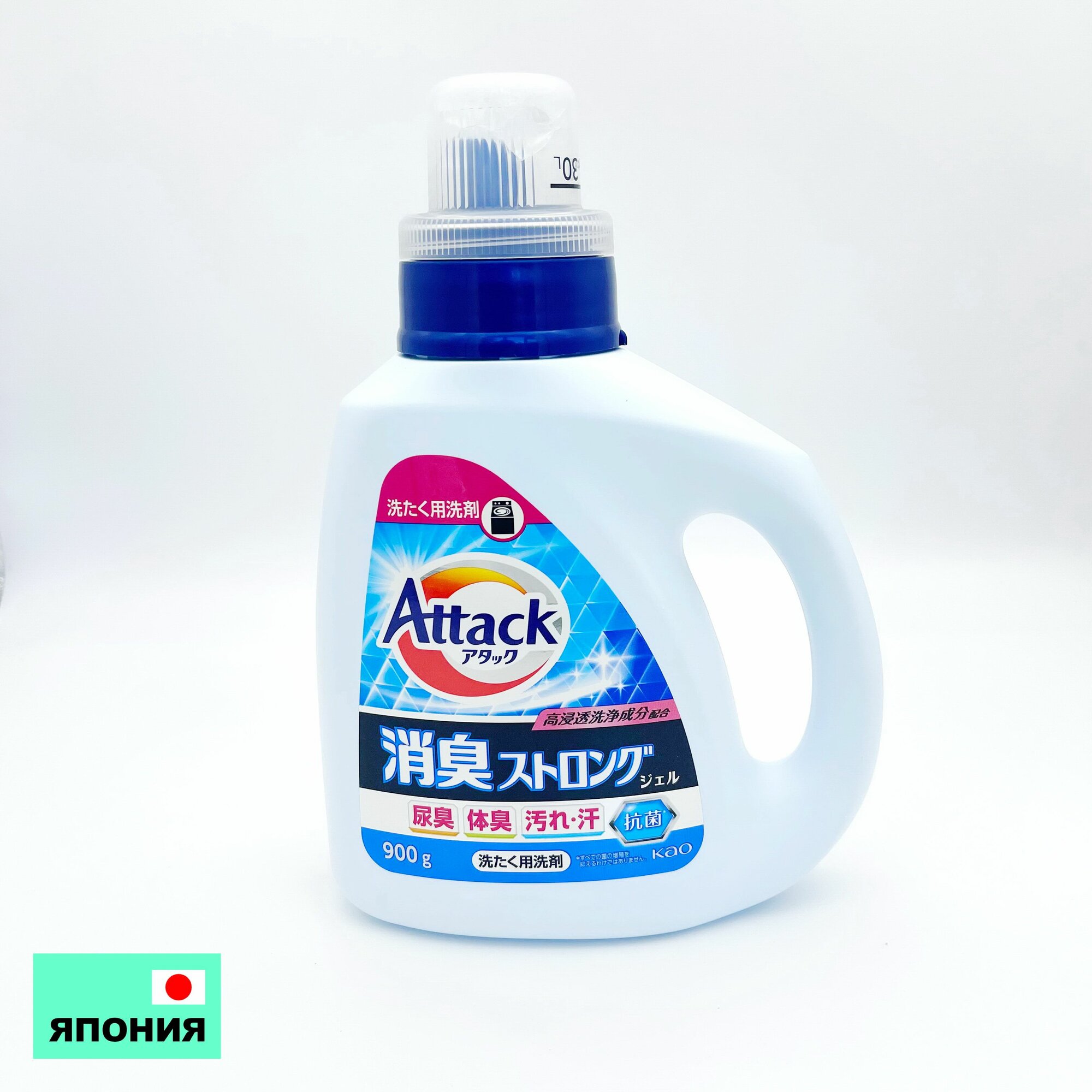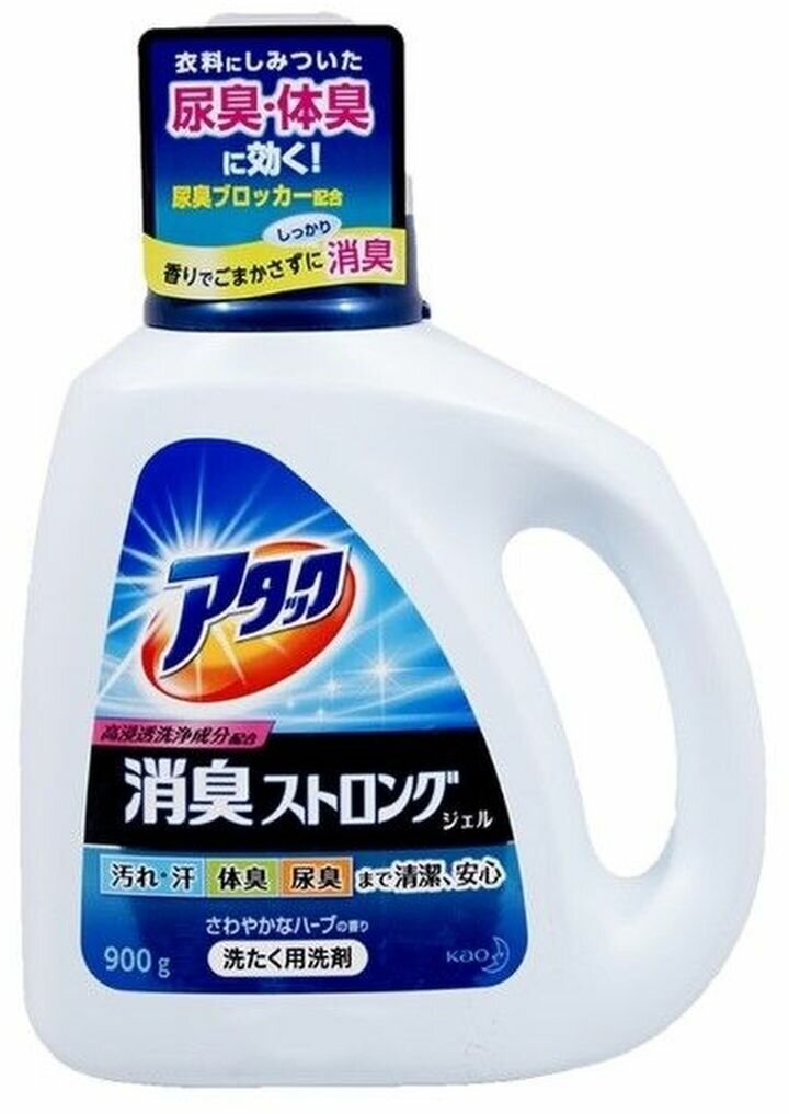 KAO Жидкое средство "Attack Deodorant Strong Gel" для стирки (с ярким мятно-травяным ароматом, против неприятных запахов) 900 г, флакон