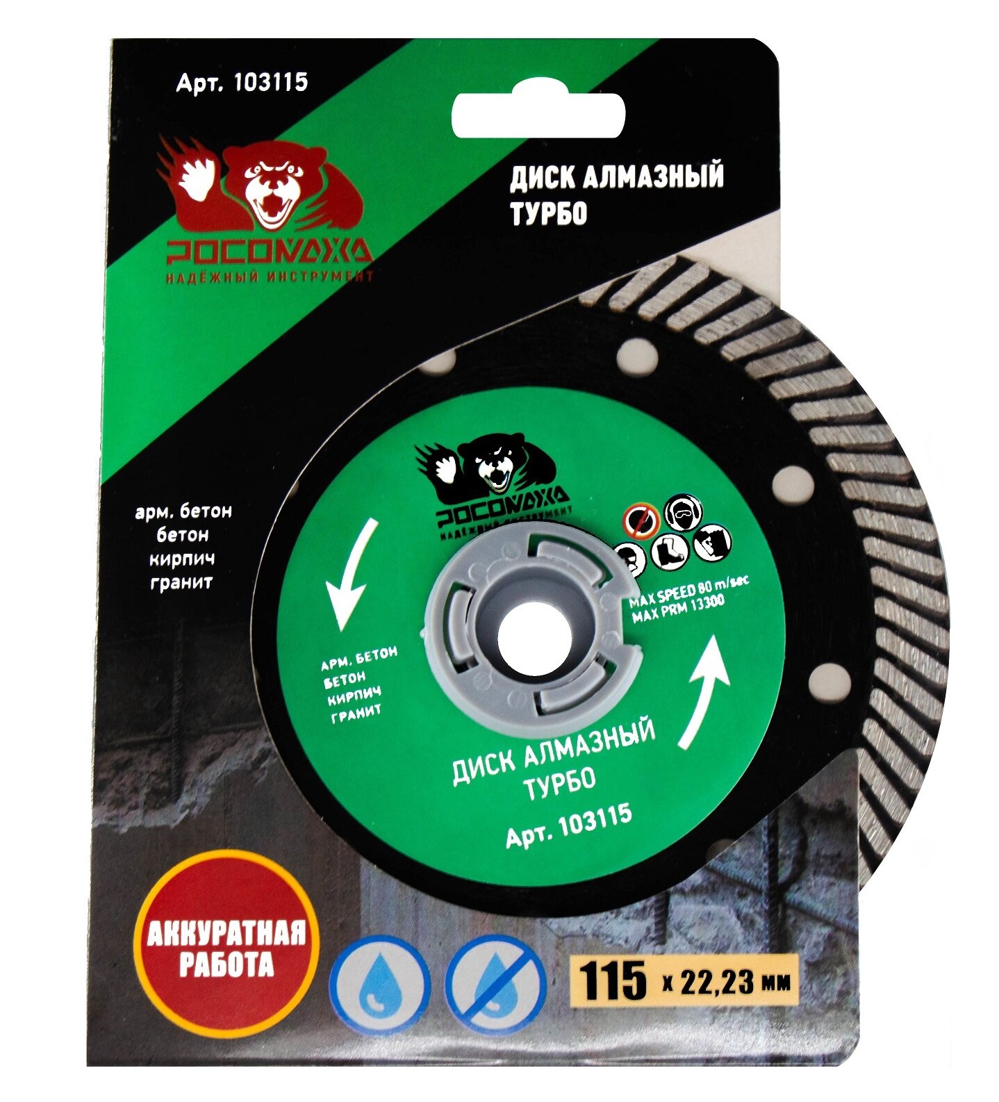 Диск алмазный "Турбо" для бетона, армированного бетона и камня 115х2,0х10х22 "росомаха" интересное: