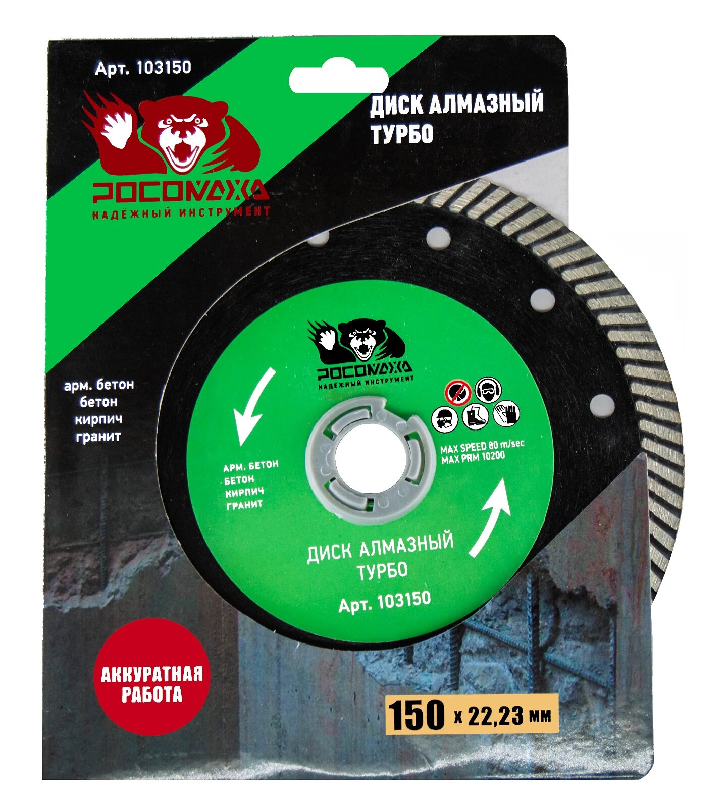 Диск алмазный "Турбо" для бетона, армированного бетона и камня 150х2,2х10х22 "росомаха" интересное: