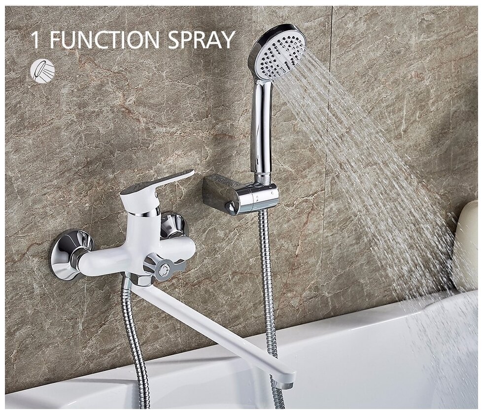 Однорычажный смеситель для ванны с душевой лейкой и длинным изливом Ledeme L2203W