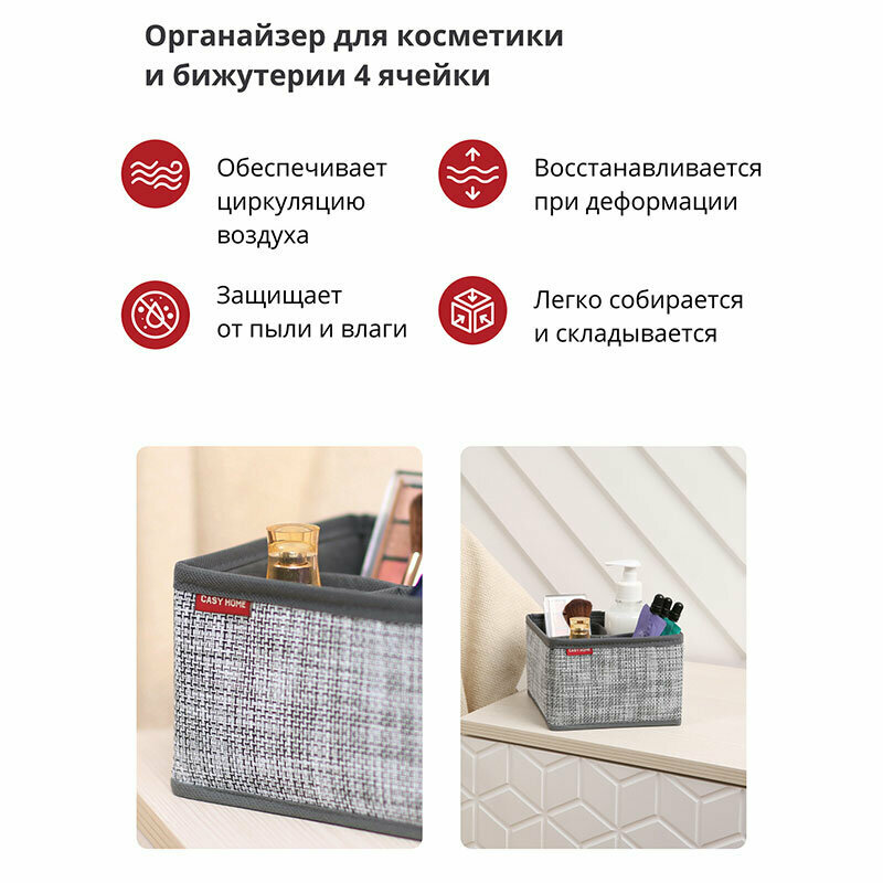 Органайзер Casy Home Лен для косметики и бижутерии 4 ячейки
