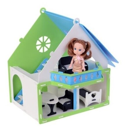 000257 Дом для куклы "Дачный дом Варенька" для кукол 10-12см. с мебелью бел.-гол. интересное: