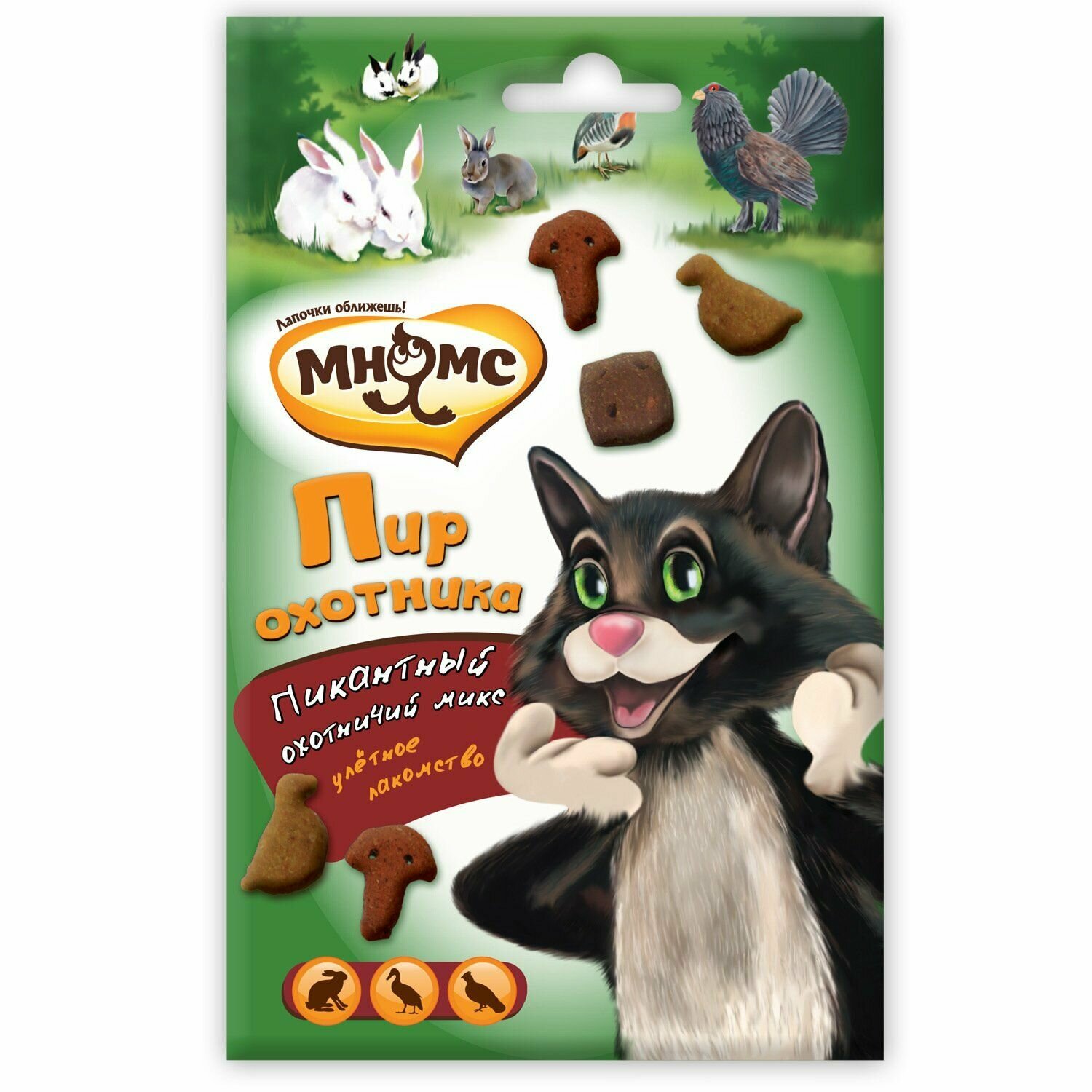 Ниже Вы можете прочитать отзывы на Лакомство для кошек Мнямс Пир охотника утка кролик дичь 50г, 3 шт, ознакомится с подробными характеристиками, посмотреть интересные обзоры и фотографии на Лакомство для кошек Мнямс Пир охотника утка кролик дичь 50г, 3 шт.