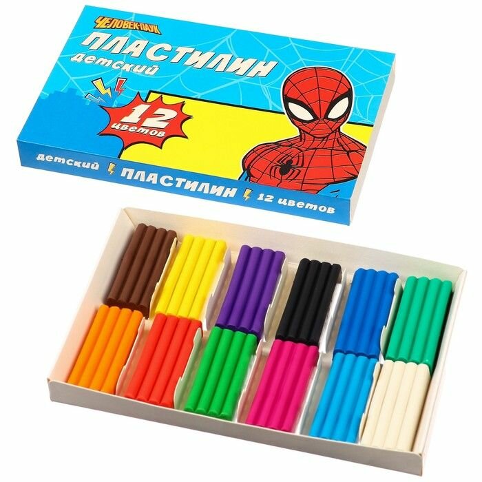 Купить Пластилин Детский, 12 цветов, 180 г, Человек-паук