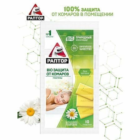 Раптор Пластины от комаров "Раптор BIO", с экстрактом ромашки, без запаха, 10 шт