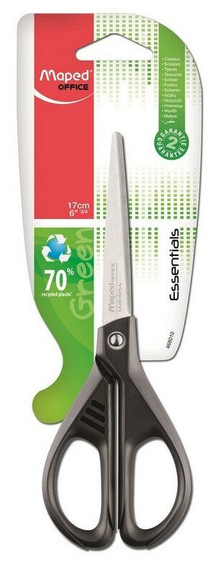 Ножницы MAPED (Франция) "Essential Green", 170мм, черные, карт. упак. с европодвесом, 468010