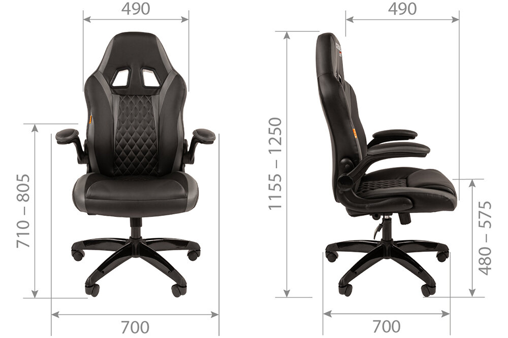 Игровое компьютерное кресло с откидными подлокотниками CHAIRMAN GAME 15, экокожа, черный/серый NEW