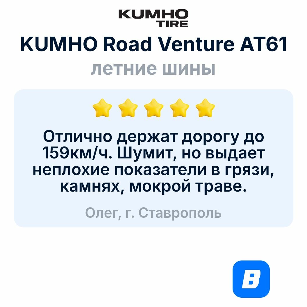 Ниже Вы можете прочитать отзывы на Автошина Kumho Road Venture AT61 195/R15C 100S, ознакомится с подробными характеристиками, посмотреть интересные обзоры и фотографии на Автошина Kumho Road Venture AT61 195/R15C 100S.