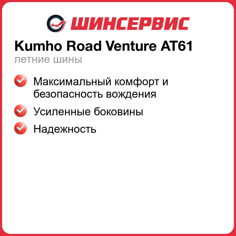 Шина летняя легковая KUMHO Road Venture AT61 205/80R16 104S XL (Арт.2247393)
