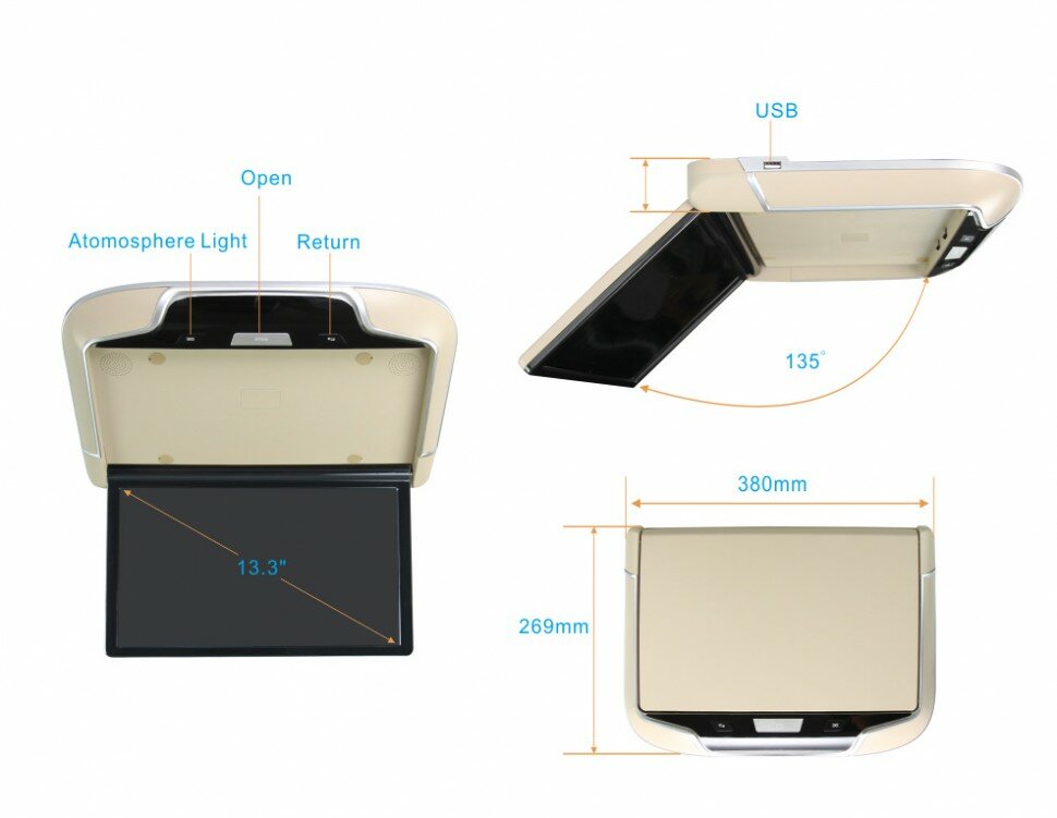 Автомобильный потолочный монитор Full HD 13,3" ERGO ER13AND на ANDROID (бежевый) интересное: