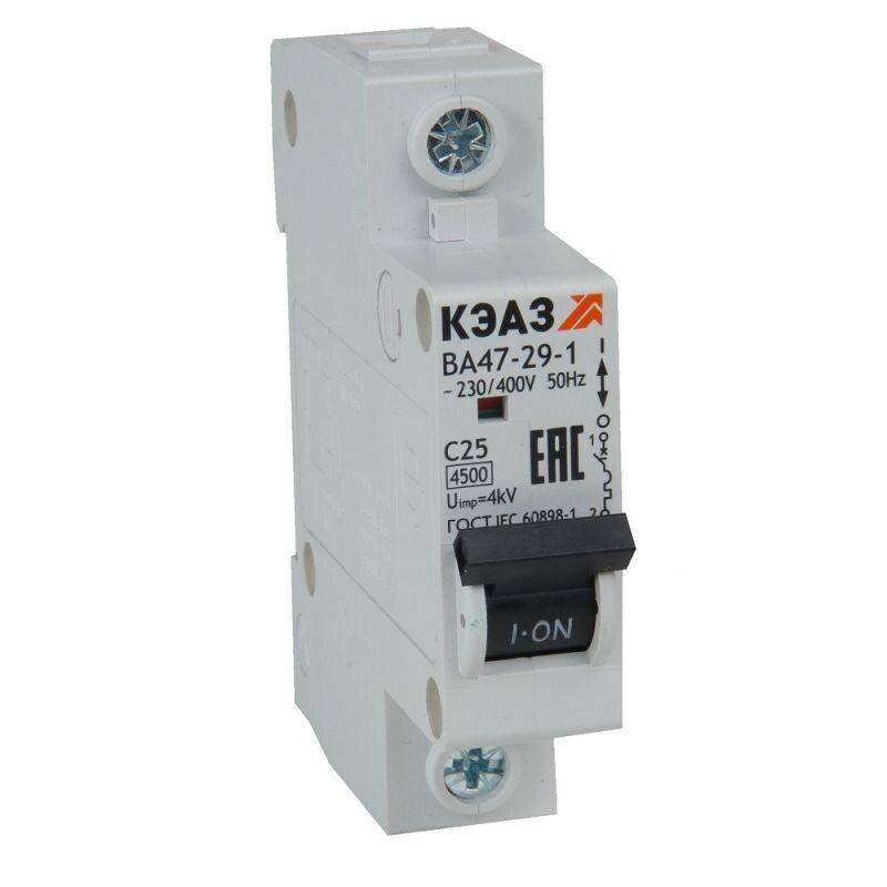 Выключатель автоматический модульный 1п C 25А 4.5кА ВА47-29-1C25-УХЛ3, КЭАЗ 141555 (1 шт.)