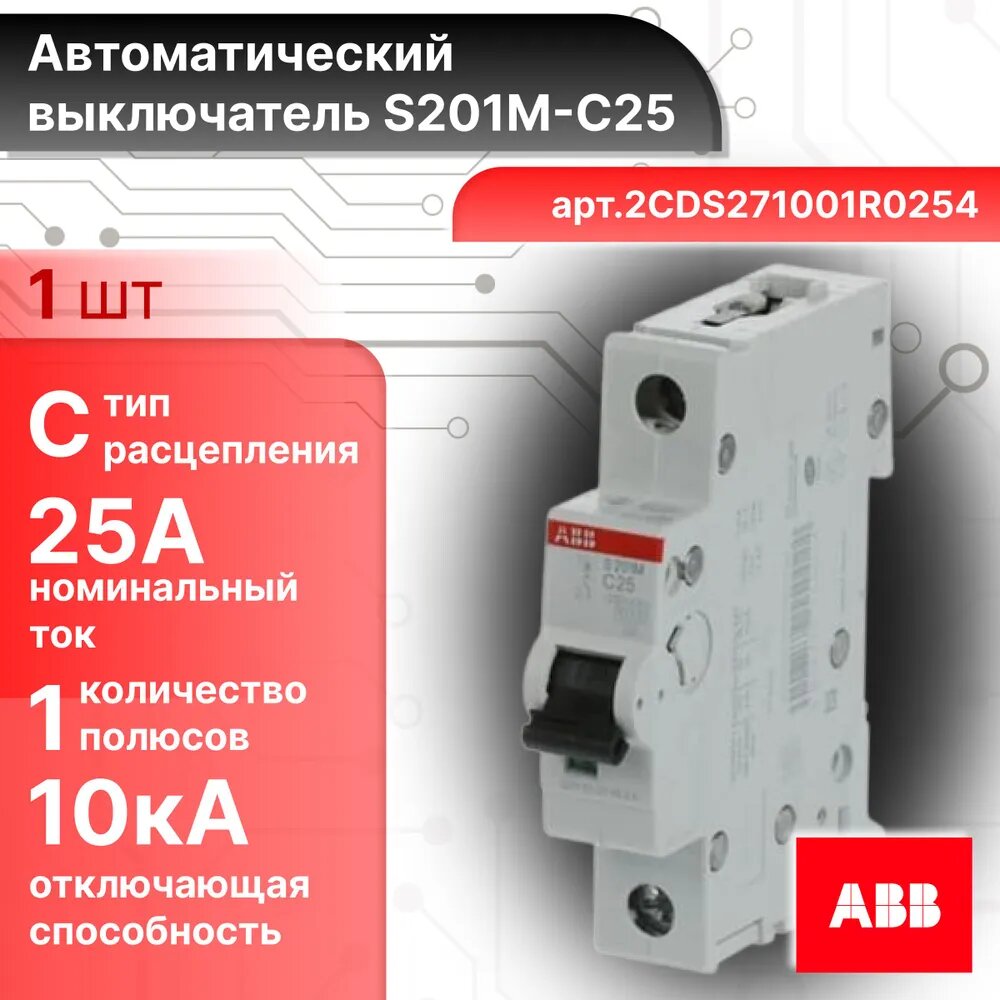 Автоматический выключатель 1-полюсной S201M C25, ABB 2CDS271001R0254 (1 шт.)