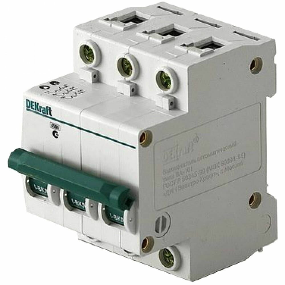 Выключатель автоматический трехполюсный 63А С ВА-101 4.5кА DEKraft (комплект 3шт)