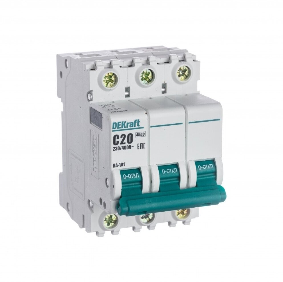 7шт. - Выключатель автоматический трехполюсный 20А С ВА-101 4.5кА / Dekraft; арт. 11079DEK; оригинал / - комплект 7шт