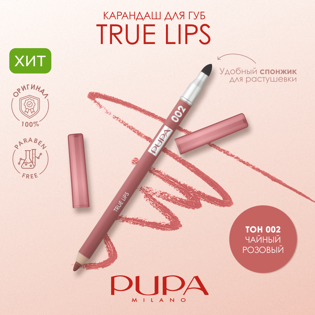 Pupa / Карандаш для губ TRUE LIPS Tea Rose Чайная Роза тон 002 + аппликатор 1,2 гр