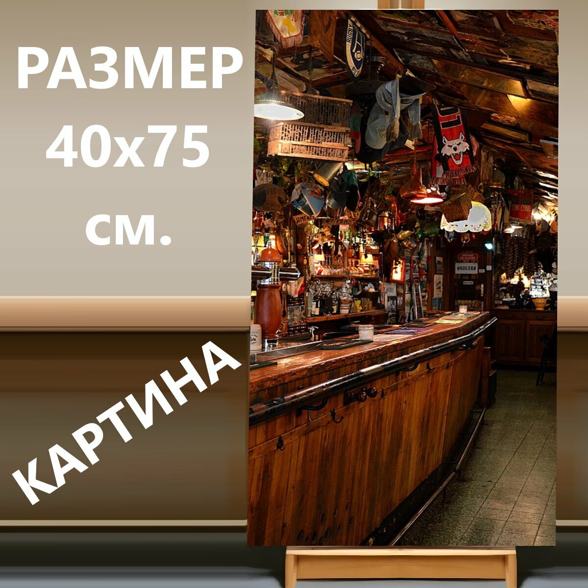 Купить Картина на холсте "Бар, кофе, паб" на подрамнике 40х75 см. для интерьера