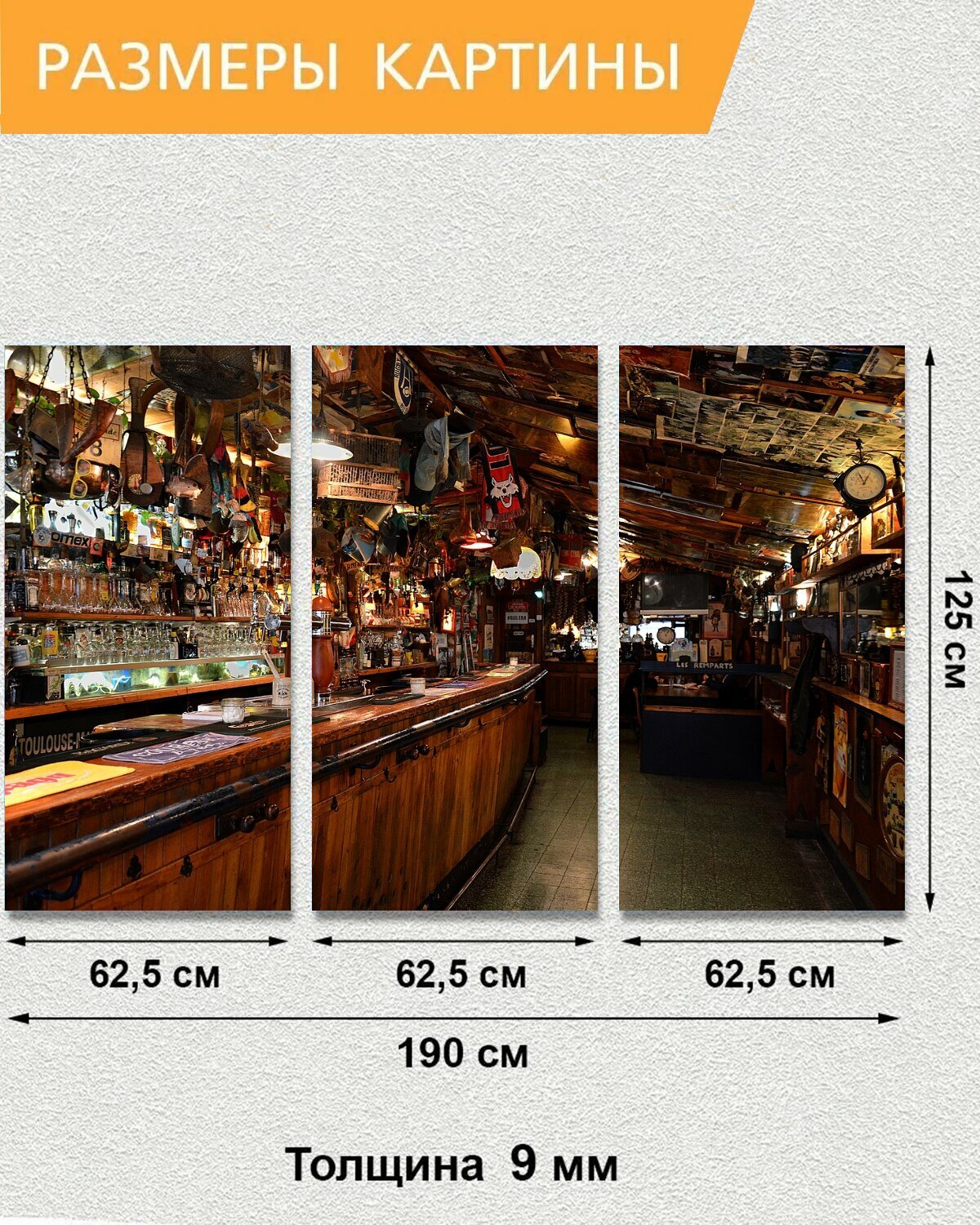 Ниже Вы можете прочитать отзывы на Модульная картина на ОСП "Бар, кофе, паб" 188x125 см. 3 части для интерьера на стену, ознакомится с подробными характеристиками, посмотреть интересные обзоры и фотографии на Модульная картина на ОСП "Бар, кофе, паб" 188x125 см. 3 части для интерьера на стену.