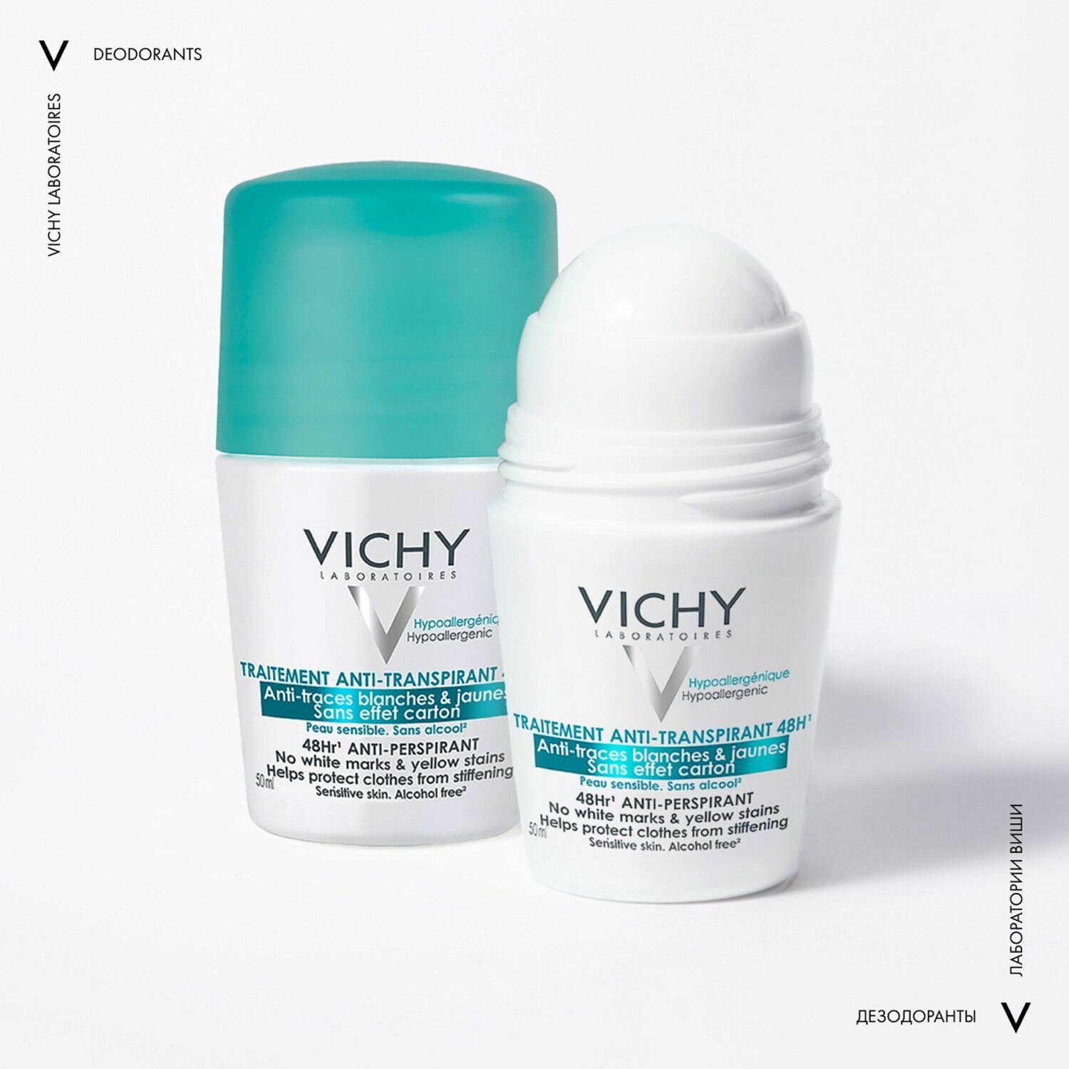 Дезодорант-антиперспирант шариковый VICHY против белых и желтых пятен 48 часов, 50 мл