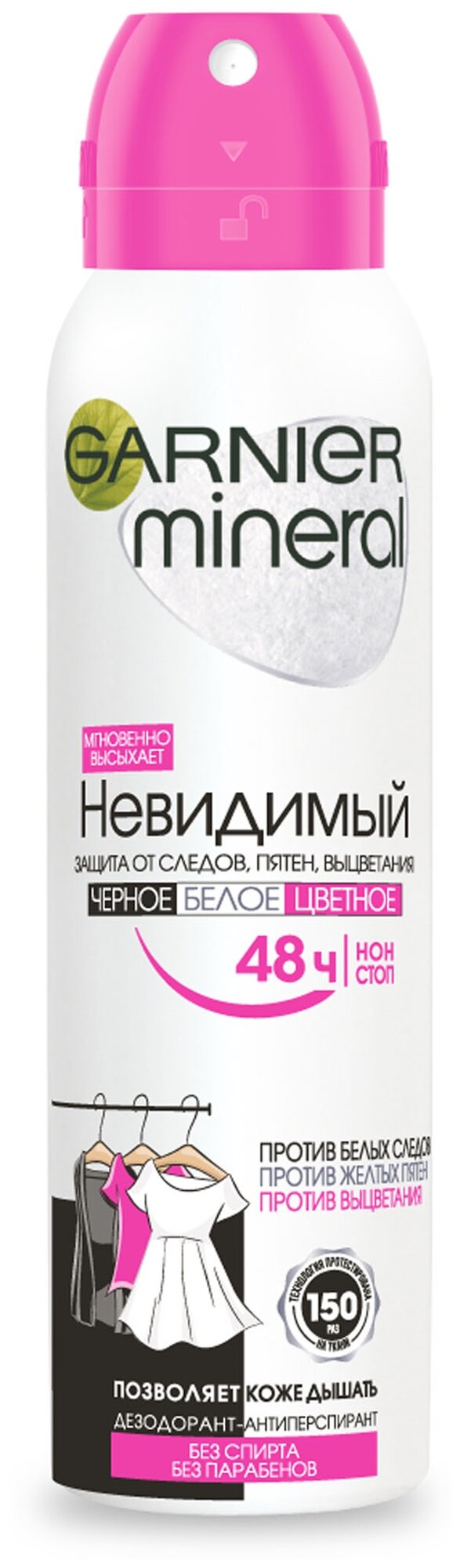 Garnier Mineral Невидимый Дезодорант-антиперспирант спрей "Черное, белое, цветное", 150 мл