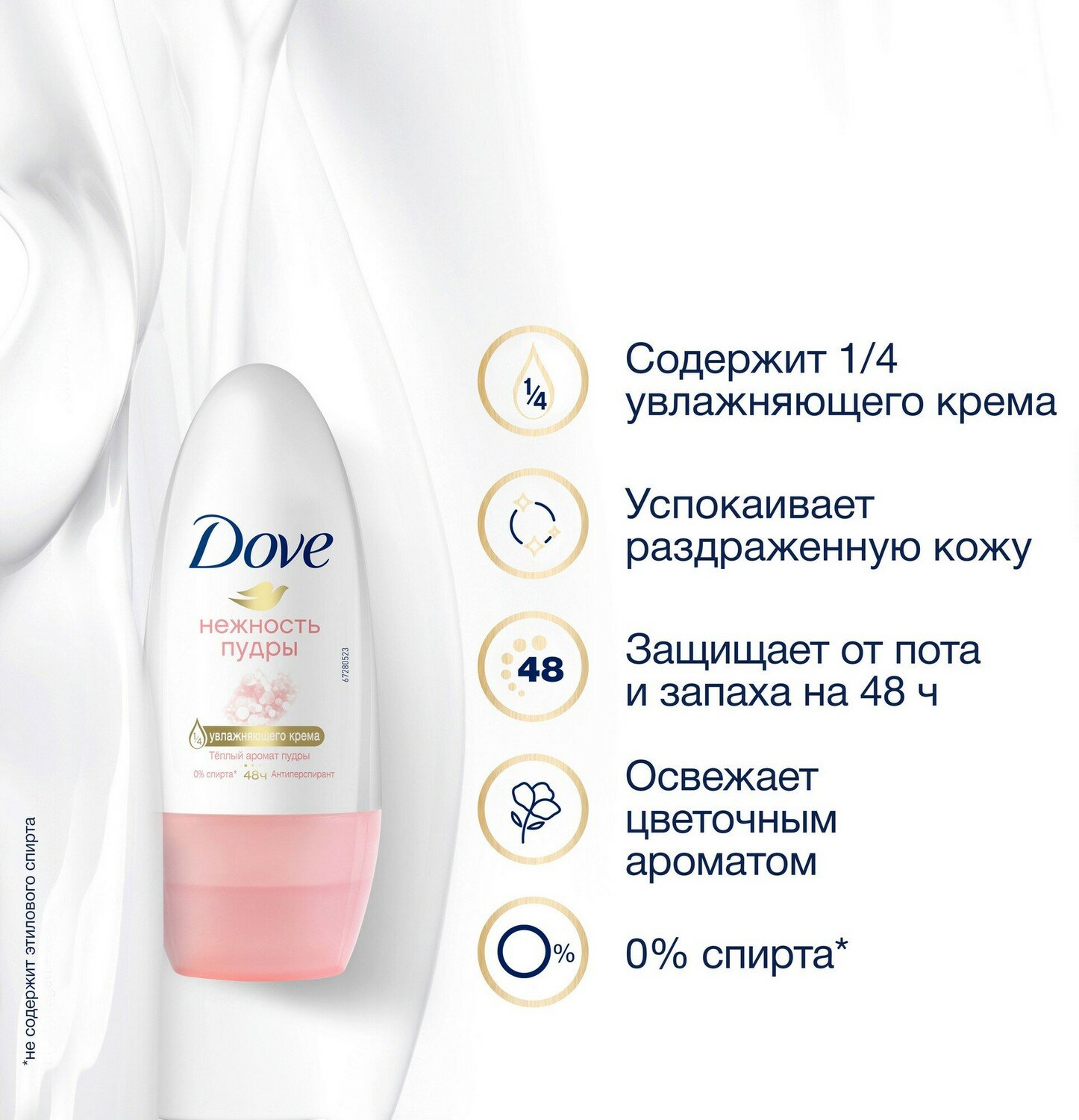Купить Антиперспирант-дезодорант Dove Нежность пудры, роликовый, 50 мл, 3 шт