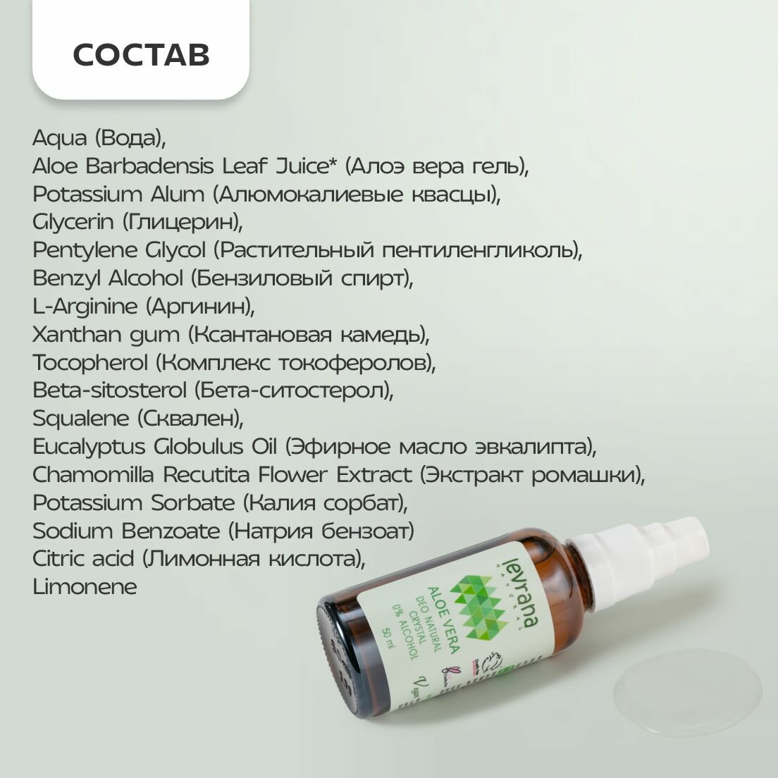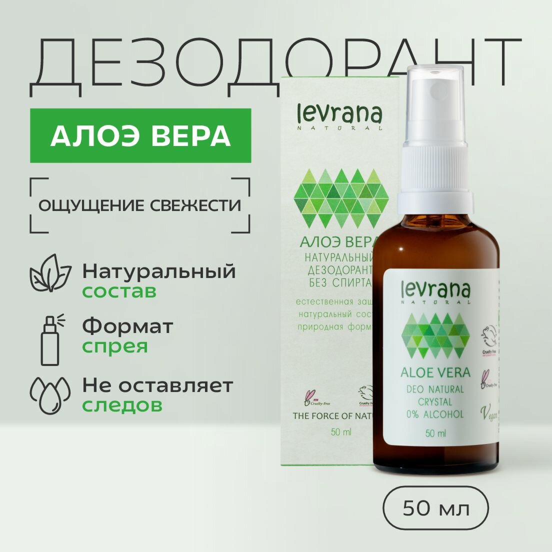 Levrana Натуральный дезодорант женский Алоэ Вера, гипоаллергенный, спрей, 50 мл