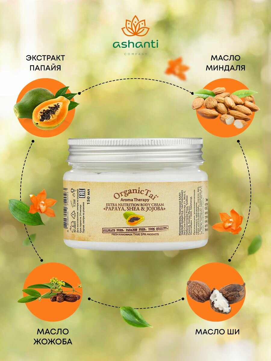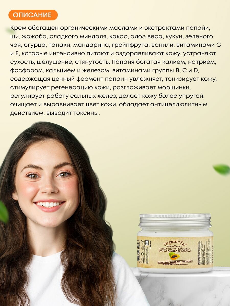 OrganicTai Экстрапитательный крем для тела «папая, ШИ И жожоба», 150 мл, OrganicTai