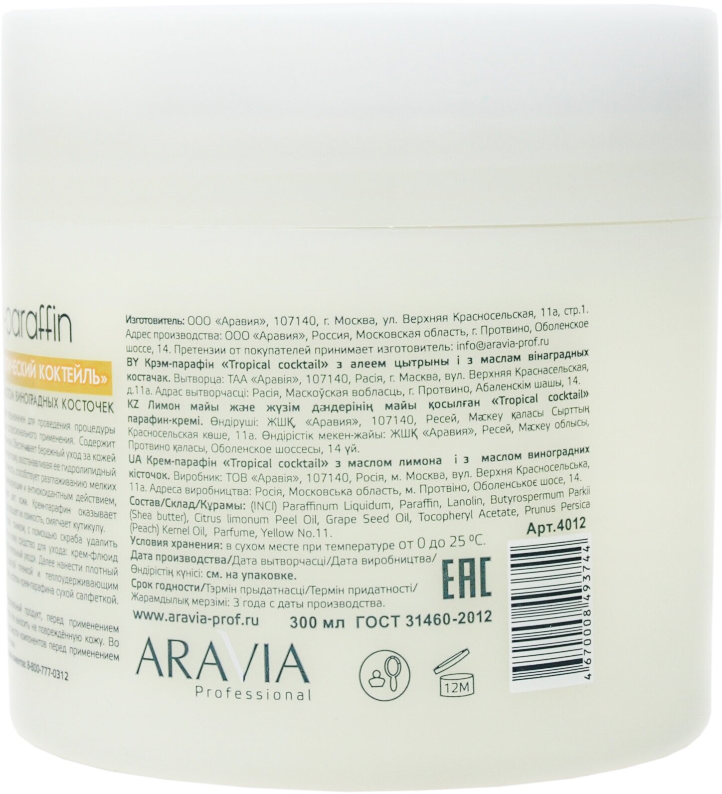 Крем-парафин ARAVIA Professional, Тропический коктейль с маслом лимона и маслом виноградных косточек