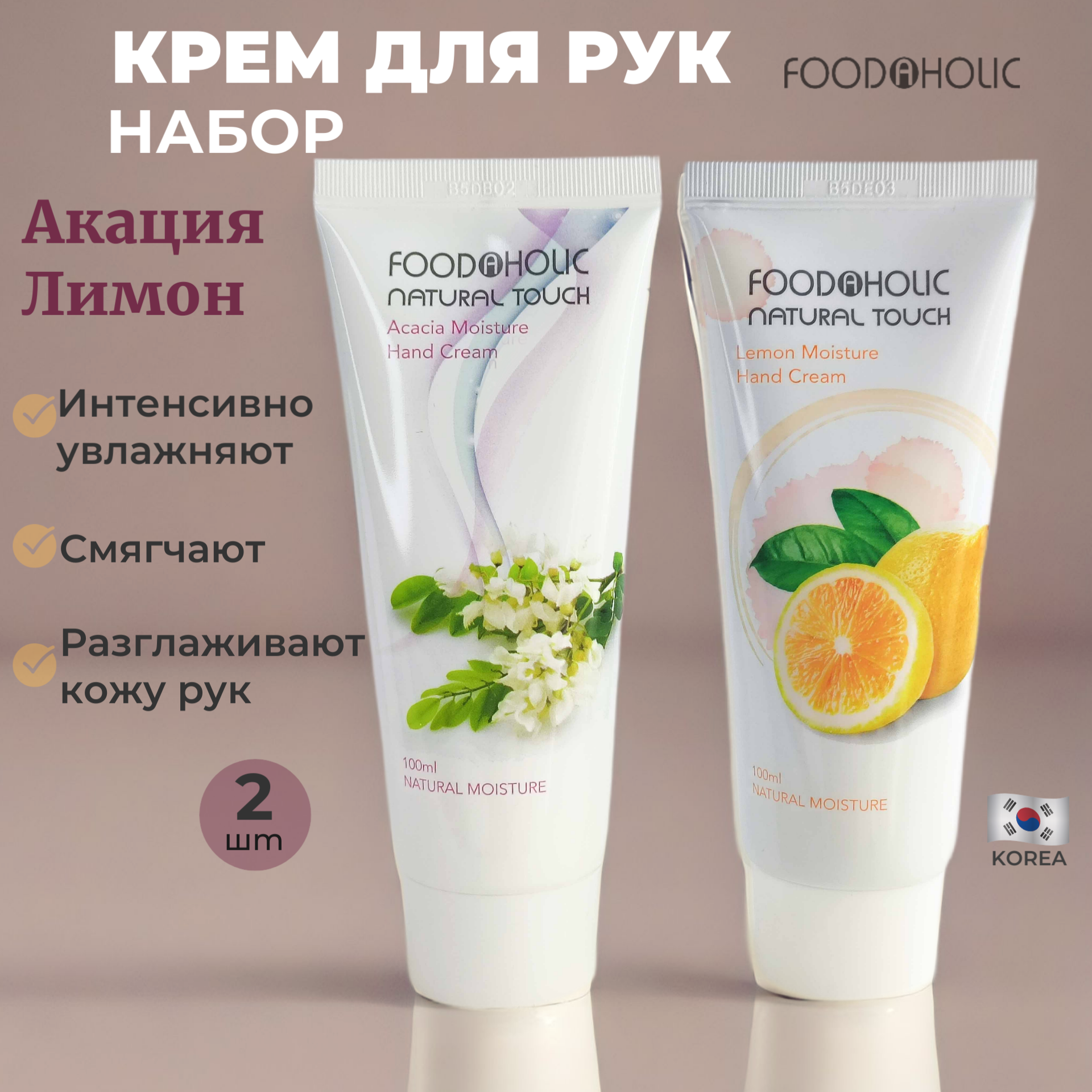 Крем для рук набор FOODAHOLIC NATURAL TOUCH MOISTURE HAND CREAM коллаген, акация корейский,2шт