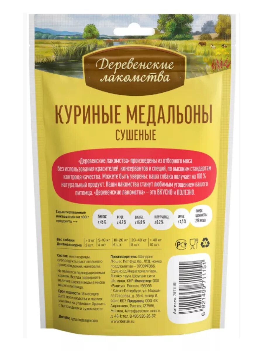 СохранитьДеревенские лакомства 79711151 для собак Куриные медальоны сушеные 90г интересное: