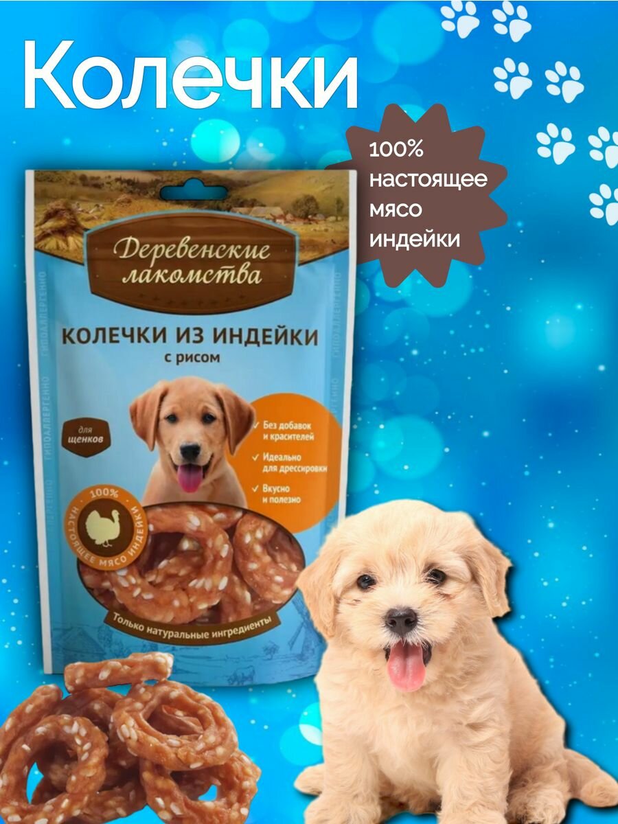 Деревенские лакомства "Колечки из индейки с рисом" для щенков пакет, 85 гр