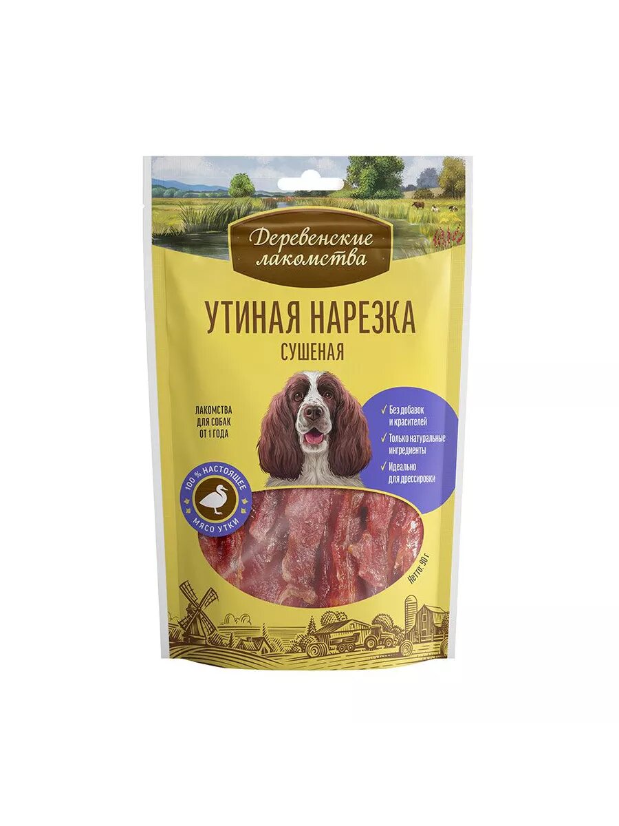 Деревенские лакомства Утиная нарезка сушеная для Собак (100% мясо), 90г 0.09 кг