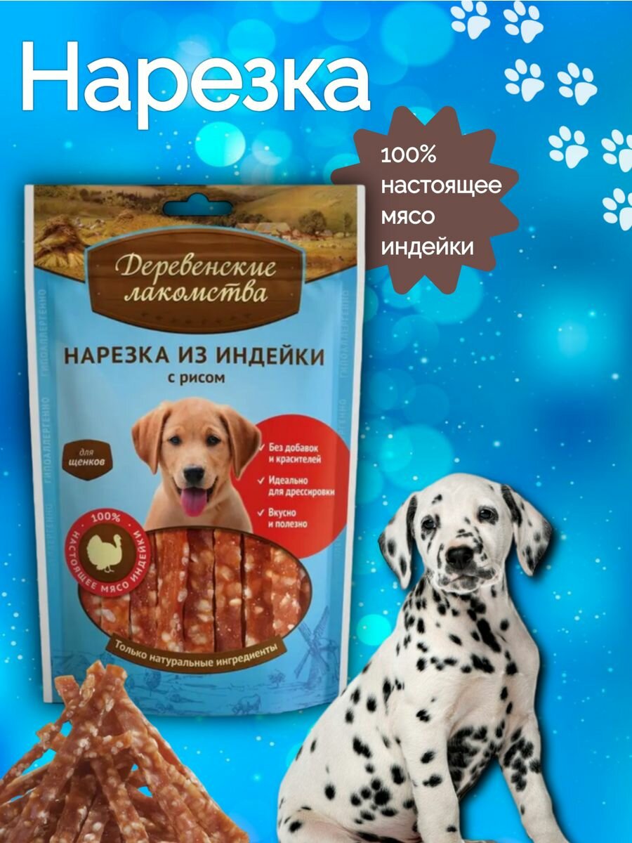 Лакомства деревенские для щенков нарезка с индейкой и рисом (85 гр)