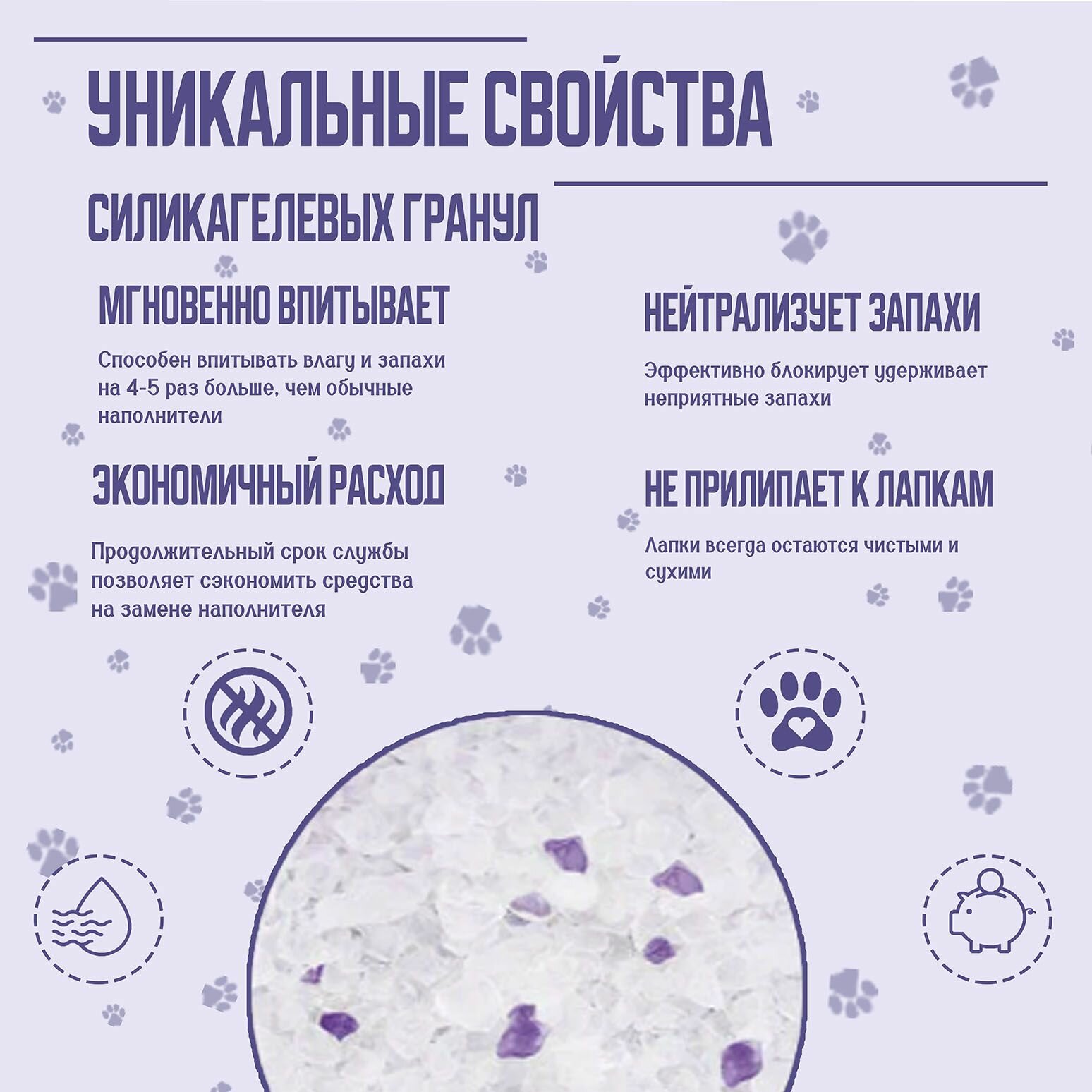 | Минусы: | Цветные гранулы растекаются от влаги и окрашивают наполнитель. Невозможно детектировать как кровь в моче |