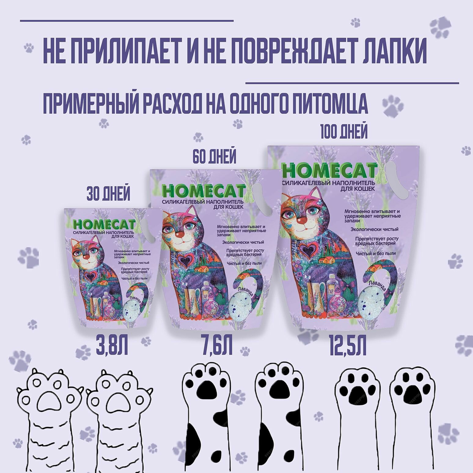 Наполнитель силикагелевый HOMECAT Лаванда 3,8 л силикагелевый наполнитель для кошачьих туалетов с ароматом лаванды